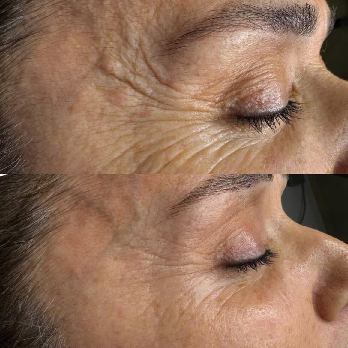 Через 1-2 недели после процедуры:- Заметное уменьшение темных кругов и отечности под глазами: улучшается